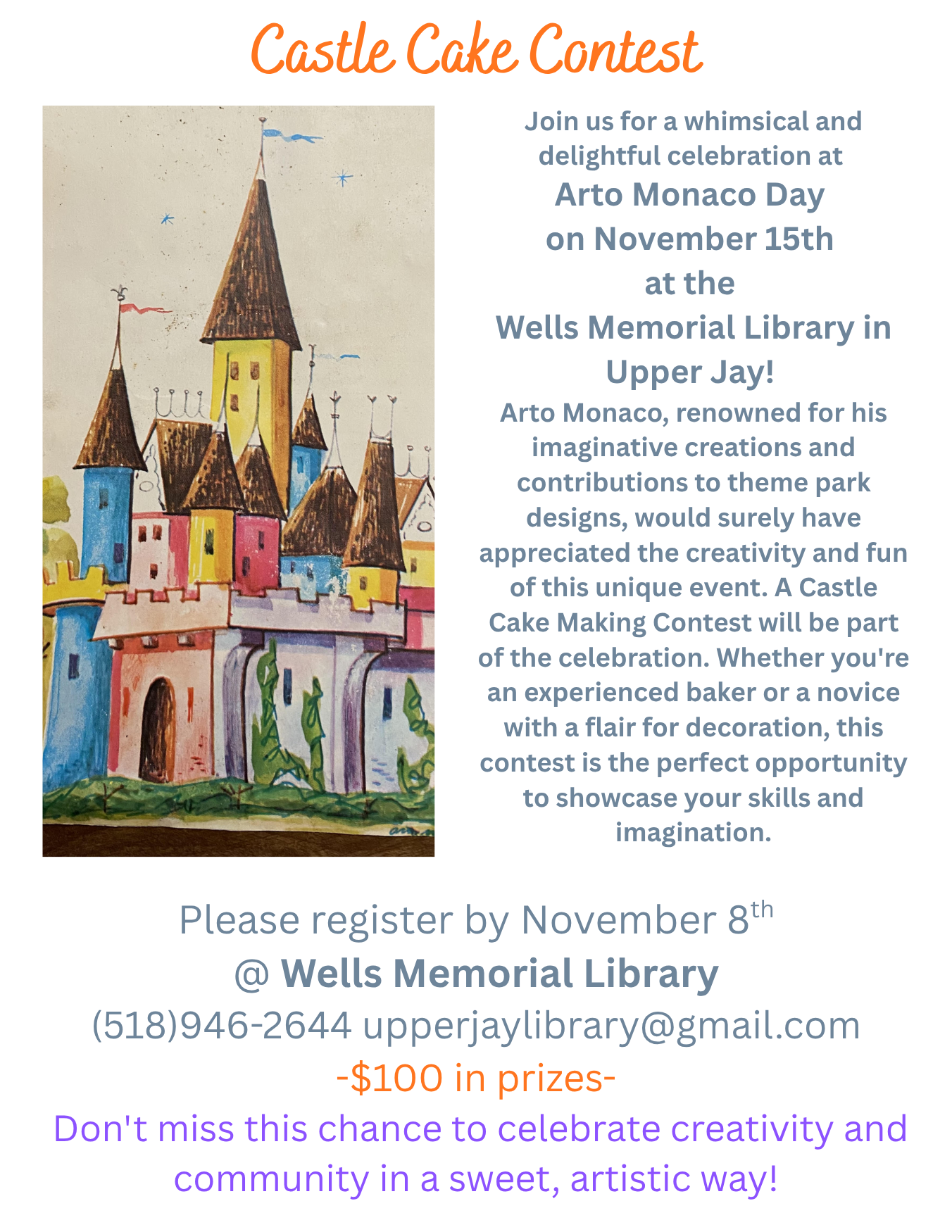 CASTLE CAKE CONTEST! – 11/15 during Arto Monaco Day – entry deadline 11/08